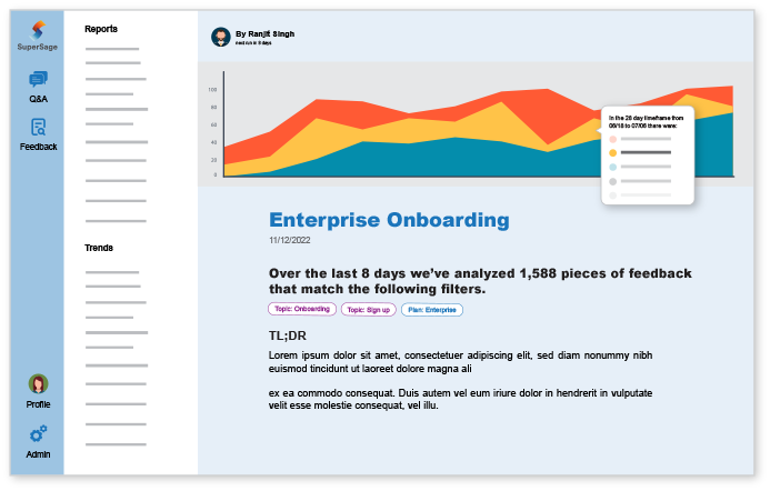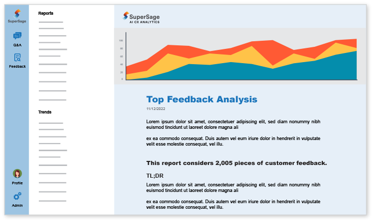 Save hundreds of hours and never look at another spreadsheet again. With our natural language reports, feedback from different sources is analyzed and automatically distilled into the most important themes based on the urgency of the language, customer tiers, churn risk, and more — not just volume or keywords.