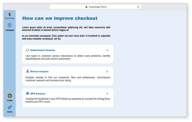 Analyze sales call transcripts, omnichannel tickets, market research, employee surveys, and others.